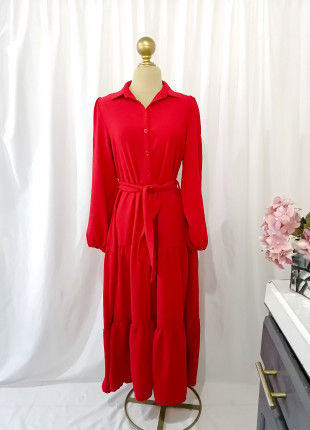 Maxi vestido rojo de olanes largo