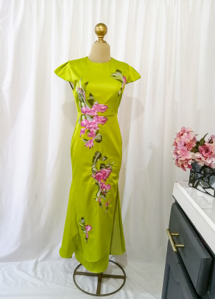 Vestido elegante verde con bordado