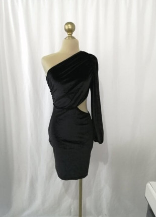 Vestido negro terciopelo asimétrico