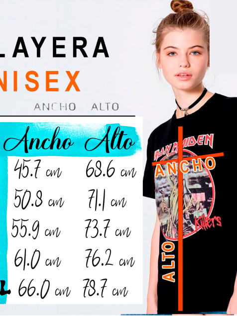 Para elegir correctamente tu talla es recomendable que compares las medidas con una playera que uses y te quede bien.