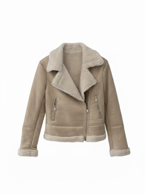 Cazadora biker beige efecto ante