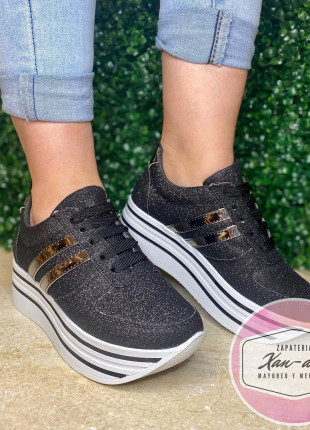 tenis negros glitter plataforma xv años