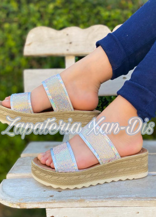 alpargatas de plataforma plateadas tornasol