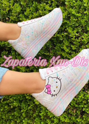 tenis de plataforma alta blancos pintura kitty pastel