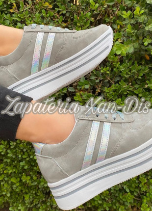 tenis de plataforma alta grises rayas tornasol