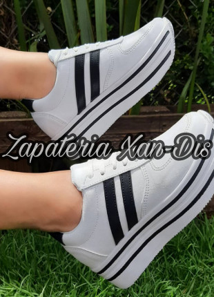 tenis de plataforma alta blancos rayas negras