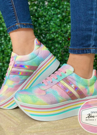 Tenis de plataforma alta arcoiris glitter 🌈