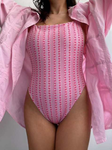 🍒One piece ajustable en estampado de cerezas. Escote pronunciado en la espalda. Forro interno en color baby pink.