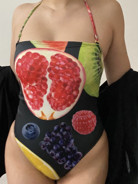 🍇One piece corte alto en estampado de frutas chunky. Escote en la espalda. Forro interno en color nude.