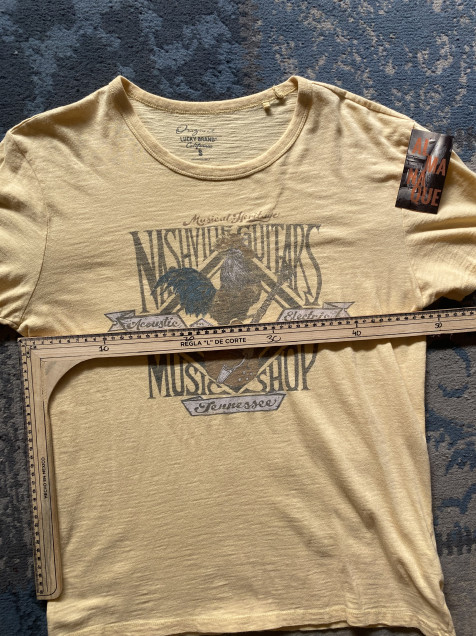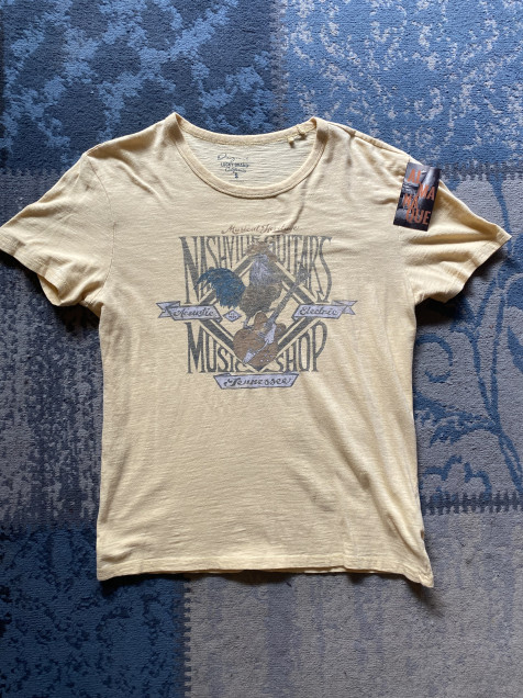 Playera Single Stitch Hombre Vintage Chica Amarilla Sun Fade Nashville Guitars