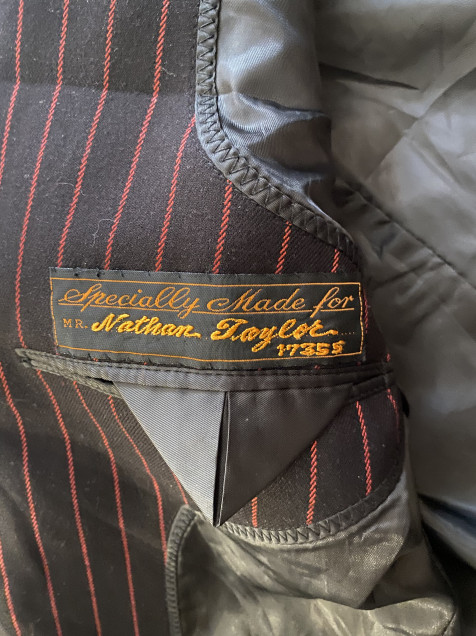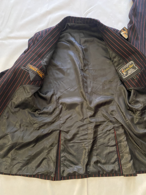 Saco Hombre Vintage Negro Rayas Rojas Pinstripe Blazer Tailored