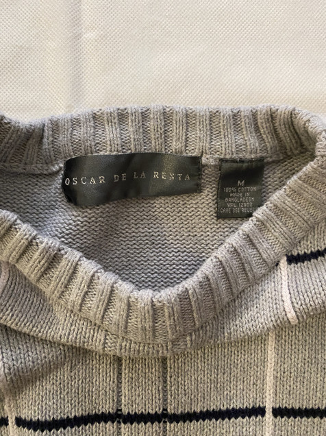 Los suéteres de Oscar de la Renta destacan por su elegancia y calidad en materiales, combinando diseño clásico con detalles sutiles. Esta pieza en tono gris presenta tejido texturizado con líneas que le dan profundidad y un look sofisticado pero fácil de usar en el día a día.