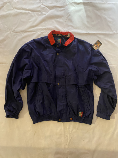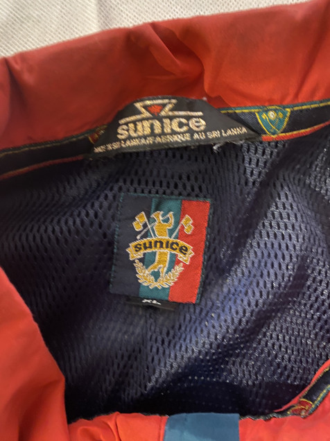 Las chamarras de Sun Ice destacan por su enfoque en funcionalidad y diseño deportivo, muy presentes en el estilo noventero. Este rompevientos en tono navy con cuello rojo y detalles gráficos aporta un look retro auténtico con mucha personalidad.