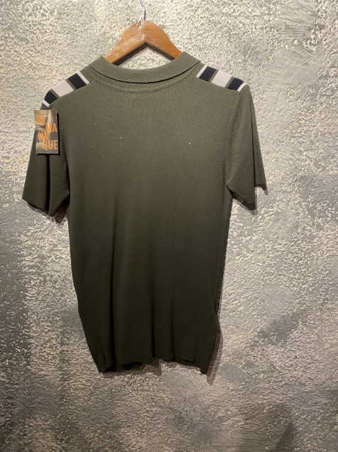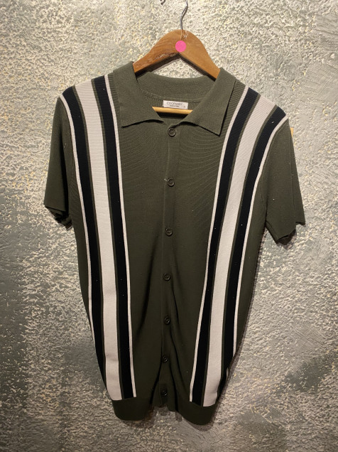 Playera Hombre Verde Knit Rayas Verticales Botones Estilo Retro