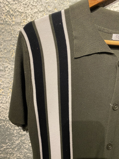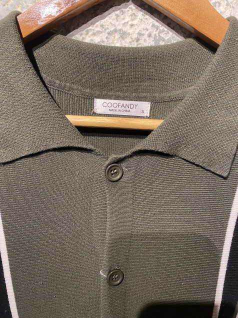 Playera Hombre COOFANDY Verde Knit Rayas Verticales Botones Estilo Retro