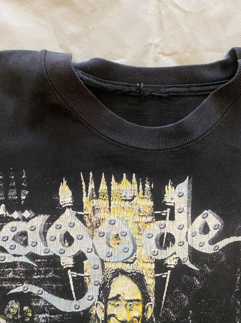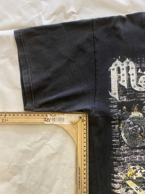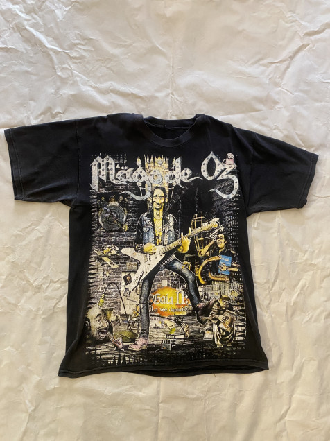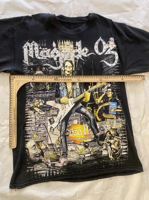 Las playeras de bandas de los 2000s se han convertido en piezas clave dentro del vintage por su carga cultural y estética gráfica. Esta pieza de Mägo de Oz presenta un diseño frontal de gran formato con ilustración detallada y un print trasero con arte emblemático, logrando un look completo y coleccionable.