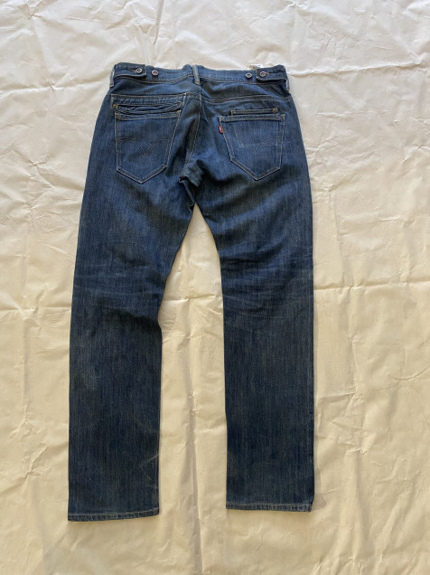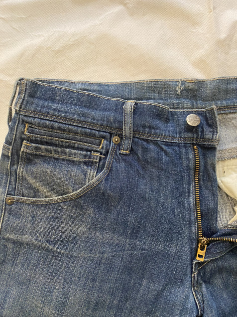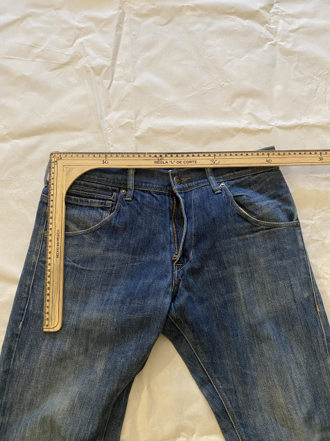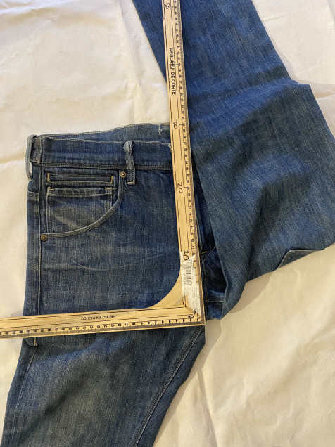 Condición: Prenda en buen estado con desgaste natural en mezclilla.