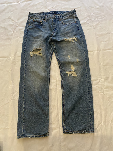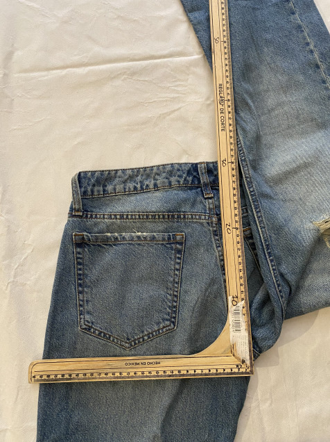 Condición: Prenda en buen estado con desgaste y roturas intencionales tipo distressed.