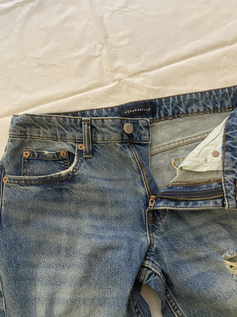 Aeropostale, marca clave del denim casual con siluetas relajadas y acabados desgastados que definen el estilo everyday.