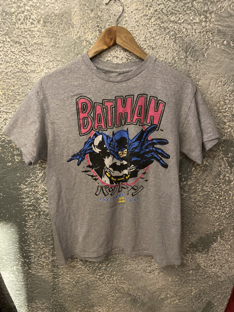 Playera gráfica de Batman con diseño llamativo inspirado en estética retro/comic. Destaca por su print frontal con tipografía bold y detalles en japonés que le dan un giro más street.