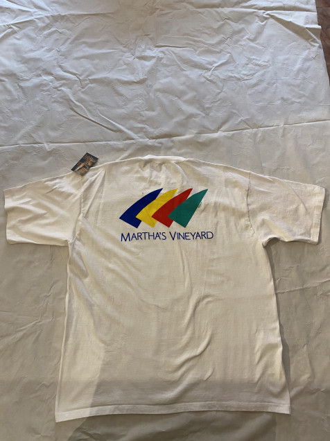 Playera vintage de Martha’s Vineyard con construcción single stitch, característica clave en prendas de los 90s.