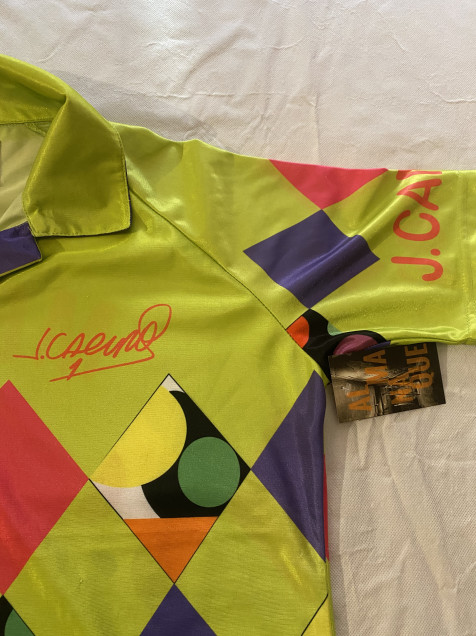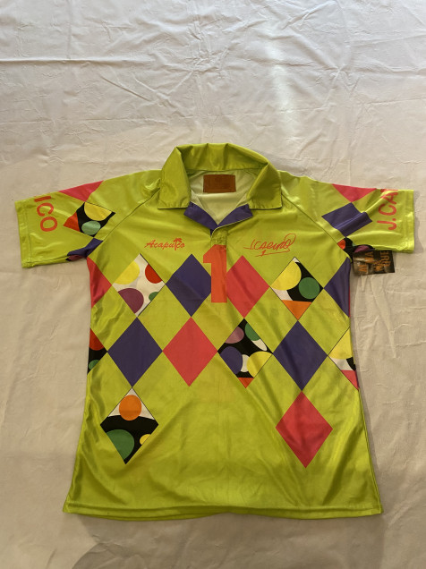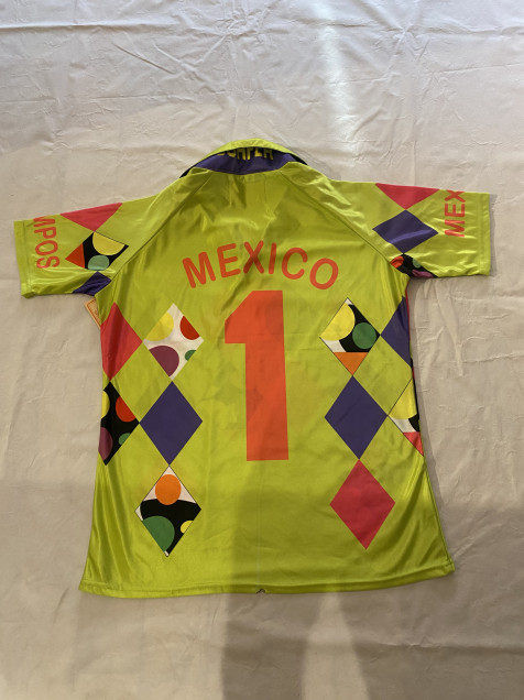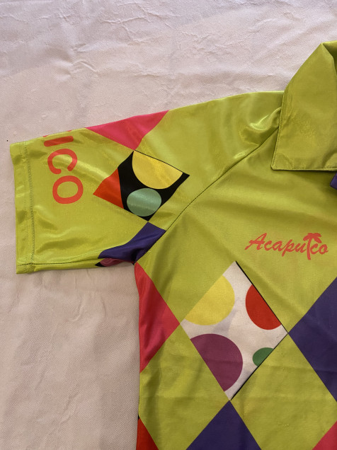 Playera tipo polo en tono verde con diseño inspirado en Jorge Campos, icónico por sus uniformes llenos de color. Presenta detalles como “Acapulco” y número frontal, con una combinación vibrante que remite directamente a su etapa como portero.