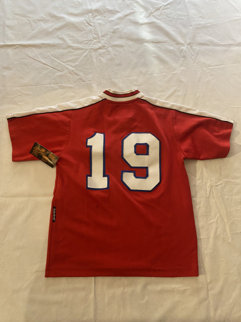 Una pieza con vibra futbolera retro, ideal para outfits casuales con influencia deportiva.