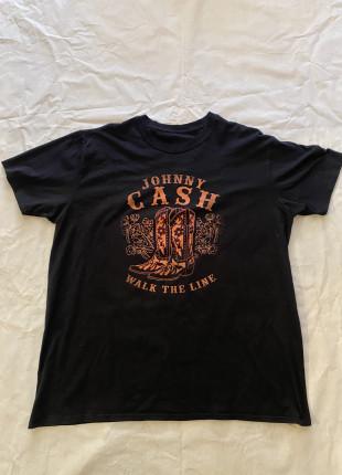 Playera Hombre Johnny Cash Negra Gráfico “Walk The Line” Clásico