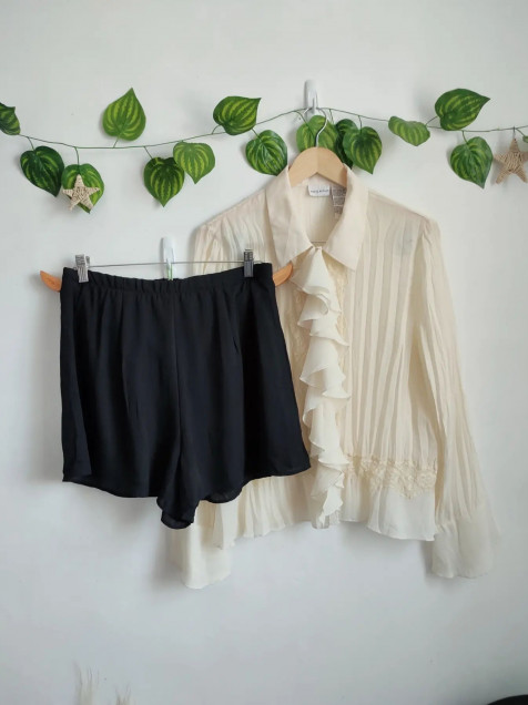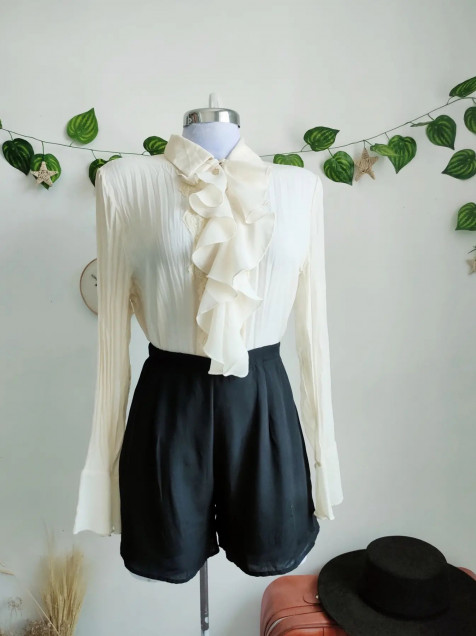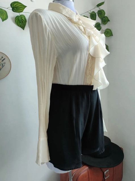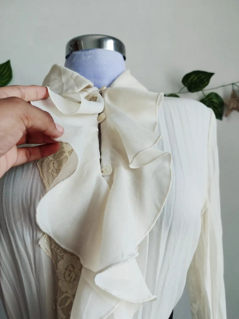 1. VENDIDA GRACIAS ❤️ Blusita vintage con olanes en frente, color perla