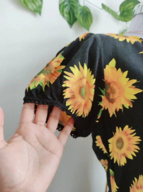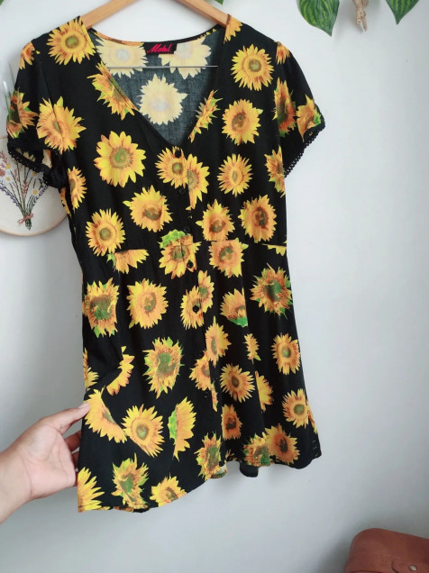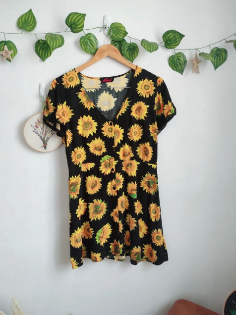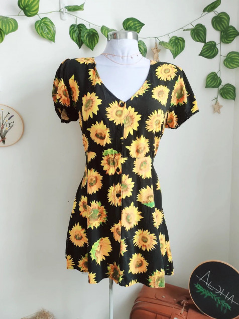 Vestido de girasoles, está super bonito tiene botones al frente 🎊