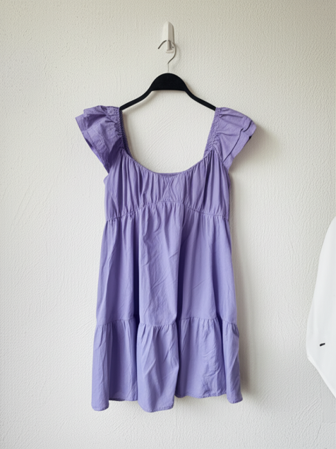 Este vestidito lila de algodón es puro amor. Ideal patara esos días de calor, tiene un corte favorecedor y un color que te hará brillar. ¡Lista para cualquier plan con este lookazo! Talla M.
