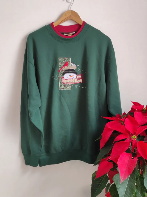 1. Sudadera verde de osito de nieve está super tierna y hermosa.