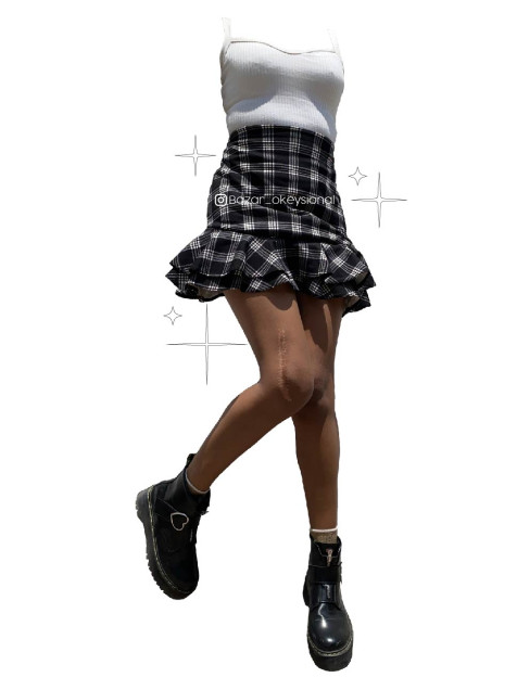 ππ«ππ§ππ: Faldita negra de tartΓ‘n con olanes, corte en A.