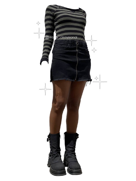 ππ«ππ§πππ¬: Playera manga larga a rayas y falda con cierre de argolla.