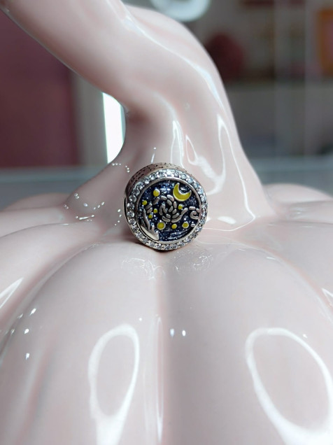 Este charm es ideal para quienes aman la astronomía o simplemente desean llevar consigo un recordatorio de la belleza del universo. Su versatilidad permite que se combine fácilmente con otros charms o se use solo para un estilo más sutil. Sin duda, es una pieza que evocará sueños y momentos especiales cada vez que la lleves contigo.