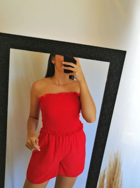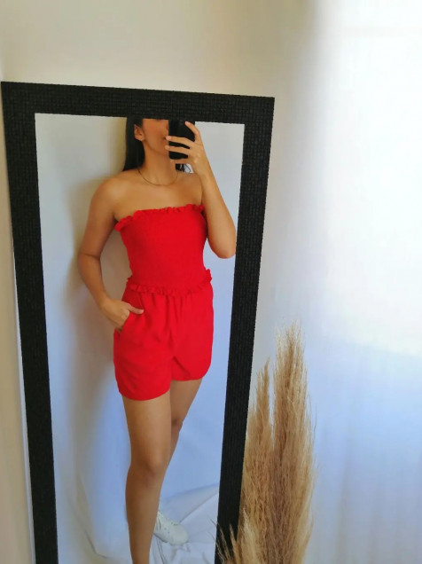 Palazzo short rojo, con bolsitas y forro talla M, tiene unas manchitas que no se le quitaron :/