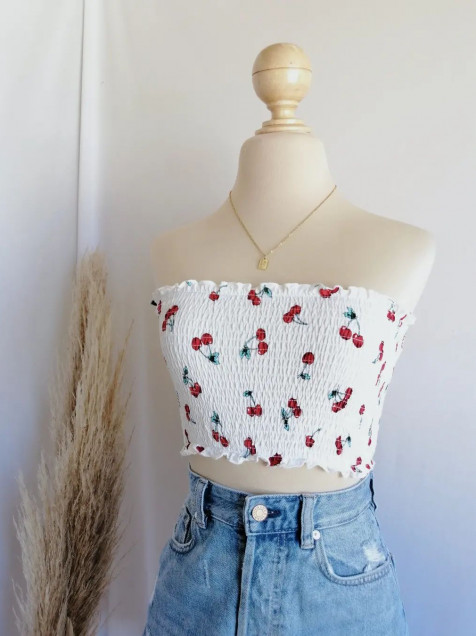 Top cerezas talla M, está super cute además que lo puedes usar sobre una camisa blanca y se ve lindo