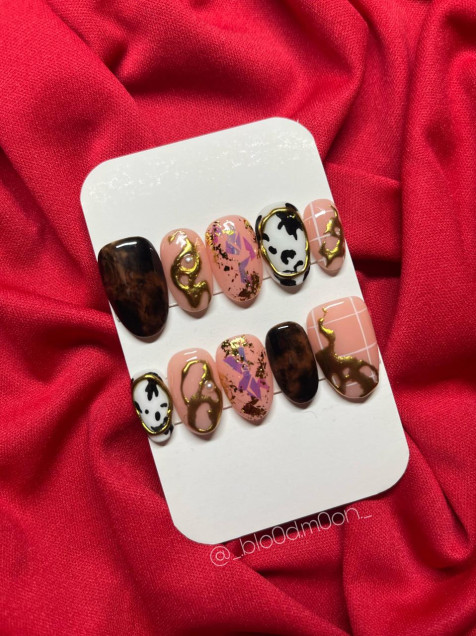 4 sets, cada uno con 10 uñas con medidas personalizadas.