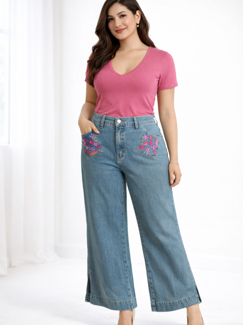 Pantalon de mezclilla con flores bordadas