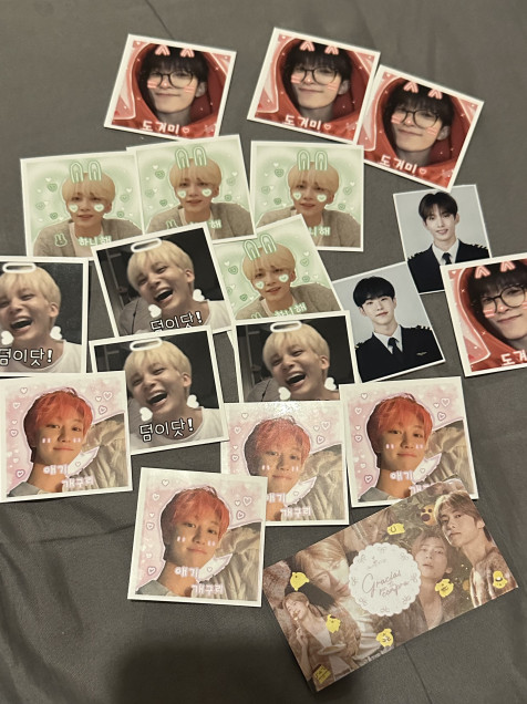 Set de stickers, postcards y photocards fanmades de varios grupos.