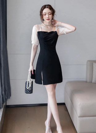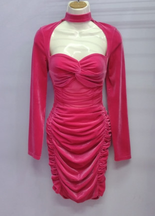 Vestido Terciopelo Manga Larga Fucsia Justo