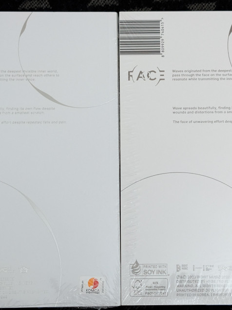 Contents of the package include a CD, CD Envelope, Photobook (Invisible Face: 76 pages / Undefinable Face: 80 pages), 4 Photo Cards (3 fixed + random 1 of 3), Post Card, and Large Post Card.