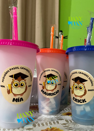 25 VASOS MAGICOS CON POPOTE PERSONALIZADOS