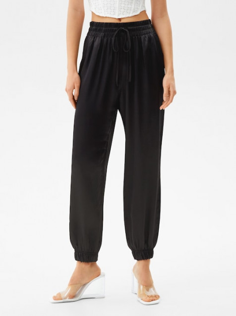 Jogger negro marca Bershka tela tipo satin