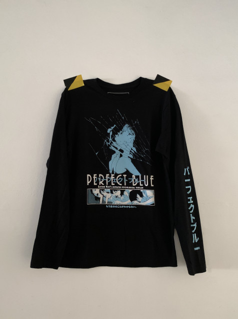 パーフェクトブルー es una película de animación japonesa de 1997 dirigida por Satoshi Kon. La película nos cuenta la historia de Mima, una idol japonesa quien decide dejar el grupo de J-pop CHAM!, con el que alcanzó gran popularidad, para dedicarse a la actuación, esta decisión es el comienzo de una serie de eventos que arrastran a Mima a un escenario confuso en el que su propia identidad está en juego. Diseño original de #downtowntees