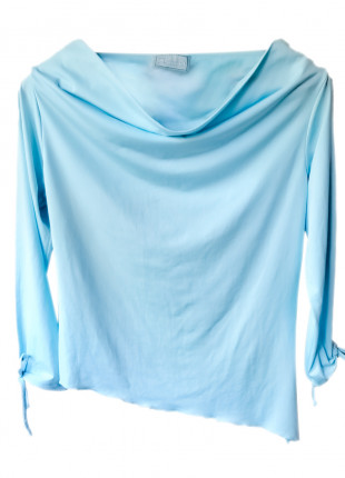 Blusa Azul Cielo, Asimétrica, Manga Abierta, Cuello Drapeado