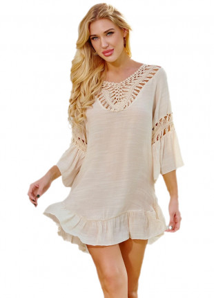 Vestido Corto Cubretodo Para Playa Beige Shein. Talla Chica y Mediana.