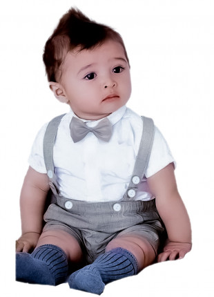 Conjunto Corbatín, Body Y Peto Gris Hibobi. 18/24 Meses.