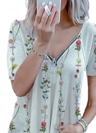 Blusa Floreada Cuello En V Con Detalle De Cierre. Talla L.