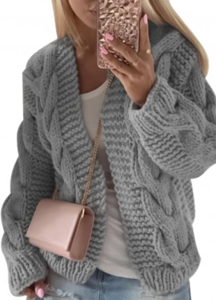 Suéter Gris Informal Tejido Con Capucha. Talla M.